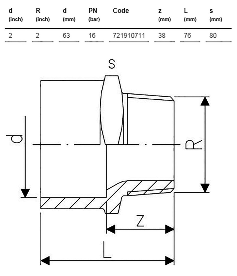Übergangsstück GF PVC-U 721.910.711 PN16, D 63 mm - 2''AG
