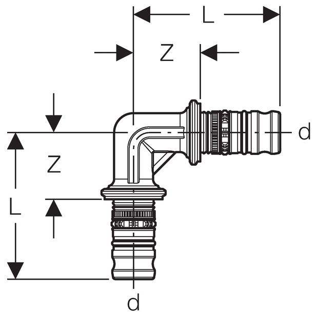 Winkel 90° Geberit MEPLA 611.271 16 mm, Messing.