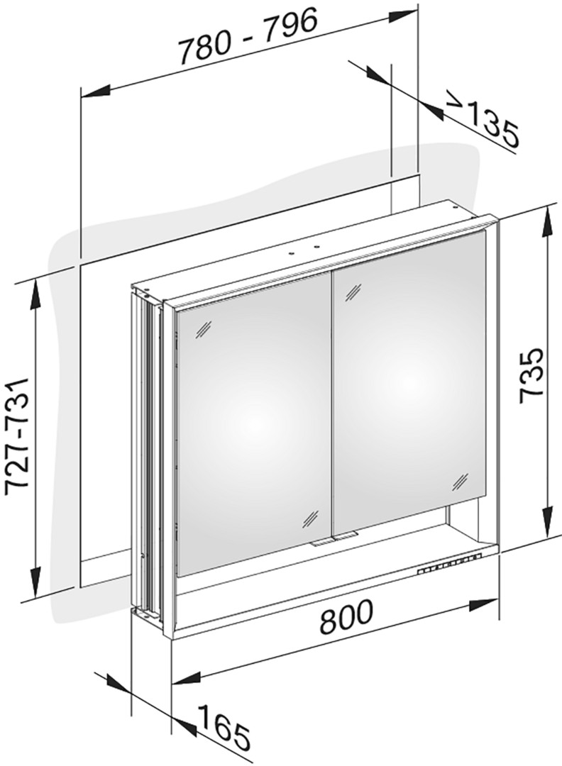 Spiegelschrank DIAMANT ALVA 43312.171301 B 800 mm, H 735 mm, T 165 mm