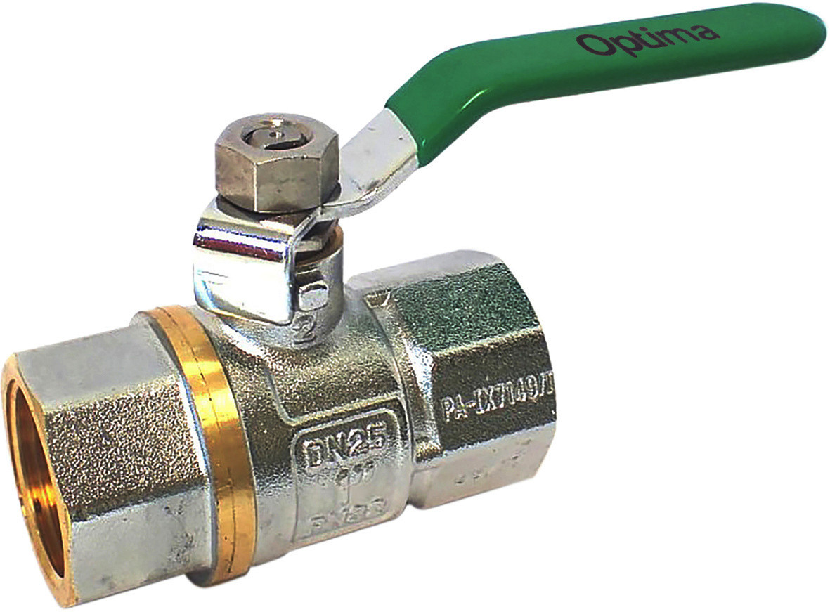 Trinkwasserkugelhahn, verchr. Optima T 1''IG, PN 10, Hebelgriff grün, Messing 543575