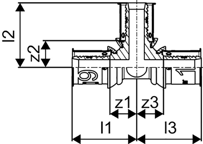 T-Stück egal Uponor S-PRESS PLUS 32, Messing verzinnt