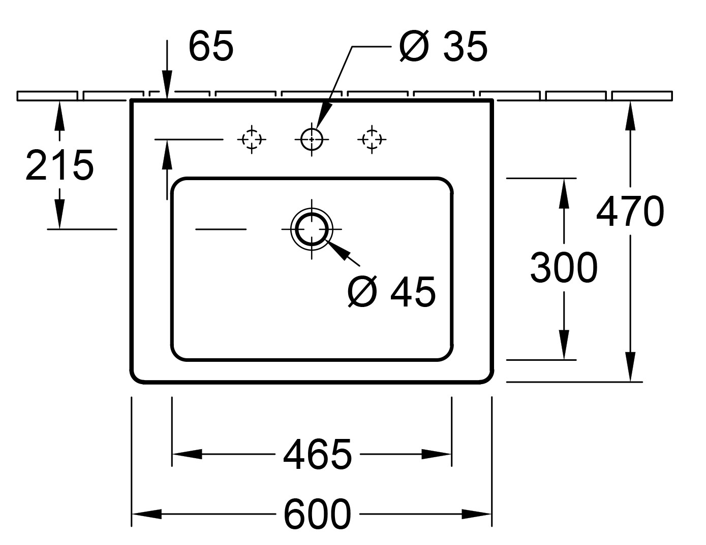 Waschtisch V&B SUBWAY2.0 7113.60 600x470mm, m.HL, m.ÜL, weiss CP 367197