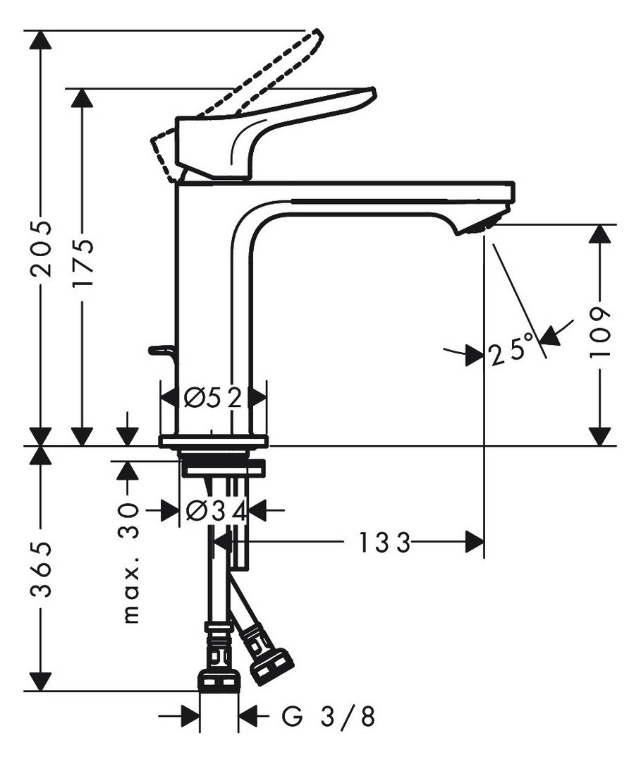 Perlator schräg 25°, Höhe Perlatormitte 109 mm