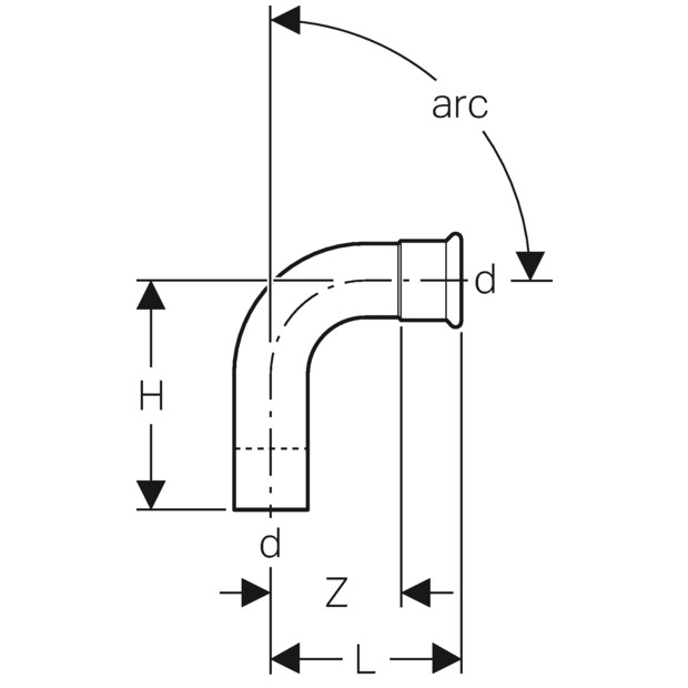 Bogen 90° MAPRESS CU 12 mm - Einsteckende 12 mm